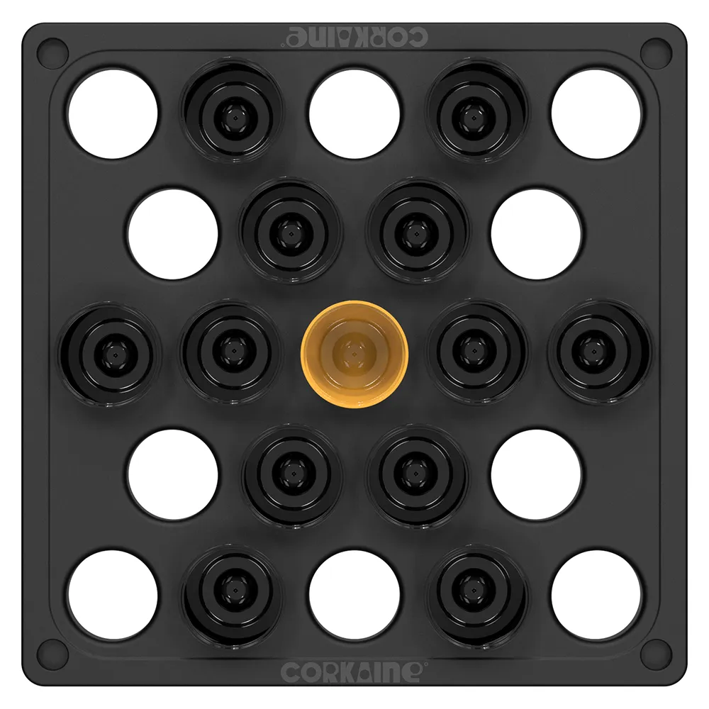 Classic Corkaine is an addicting cork toss game where teams compete to win cups by strategically tossing wine corks into their targeted cups on the gameboard. The team who has the most corks in any of the cups on the board at the end of each round wins those cups and then follows the rules of the cups won.